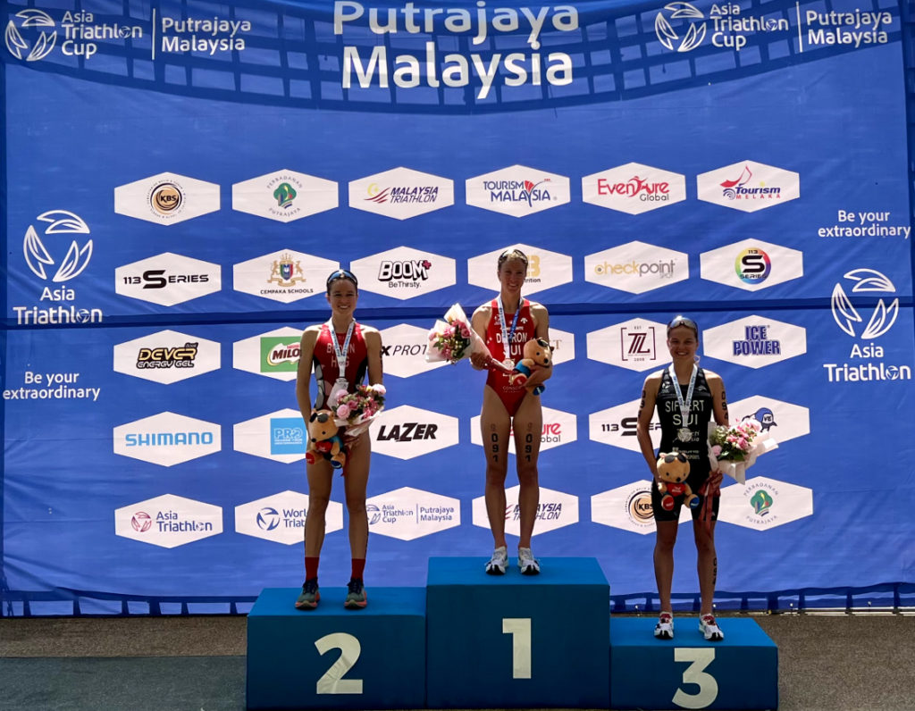 Le dimanche 25 février 2024, j’ai décroché le bronze à la coupe d’Asie à Putrajaya en Malaisie, en un temps de 59’35. Je suis trop contente de pouvoir commencer la saison avec une telle performance et mon premier podium à la clé, partagé avec ma coéquipière suisse Julie Derron (1ère place) !