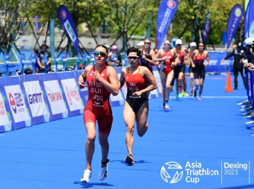 Je suis arrivée en première position dans la deuxième transition. La course à pied s’est déroulée sur un parcours avec deux légères montées et descentes sur 4 tours de 2.5km. Je me suis rapidement fait devancer par mes concurrentes. Les deux premiers tours ont été très rudes, puis j’ai réussi à laisser aller les jambes et me concentrer sur ma technique. J’ai terminé à la 14ème place en 02:02:57. Un joli top 15 pour ma première coupe d’Asie et une belle marge de progression pour la suite.