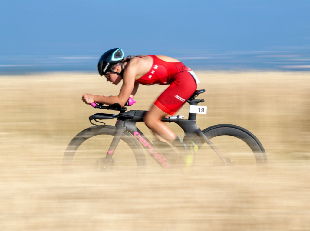 La transition s’est très bien déroulée et je suis partie en tête sur le vélo avec 4 boucles à effectuer. Au premier tour dans la montée très raide les jambes me faisaient bien mal et brûlaient. Puis j’ai trouvé mon rythme et j’ai accéléré à chaque tour. Je me sentais très puissante et j’ai pu pousser fort sur les pédales. Après trois tours, j’étais en 3ème position overall. À ce moment-là, mon objectif était de faire la course contre les hommes.