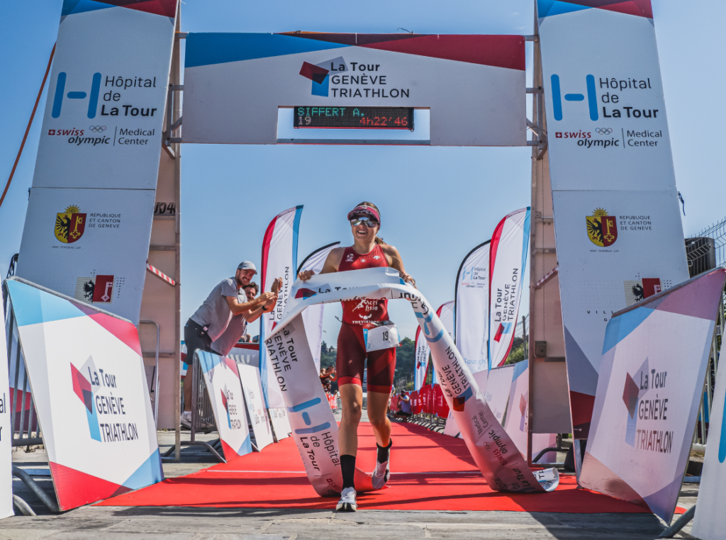 J’ai commencé la course à pied en 4ème position chez les hommes. J’ai pris un solide rythme en me concentrant sur ma posture, ce qui m’a permis de garder ma technique tout au long des 20km et de me sentir légère. Il faisait une extrême chaleur, mais je me rafraîchissait régulièrement. J’ai augmenté mon rythme au long des 4 tours et j’ai tout donné jusqu’à la ligne d’arrivée. J’ai terminé les 20km de course à pied en 1h19’01’, mon meilleur temps à ce jour! J’ai remporté le Triathlon de Genève et me suis classée 5e des hommes.
