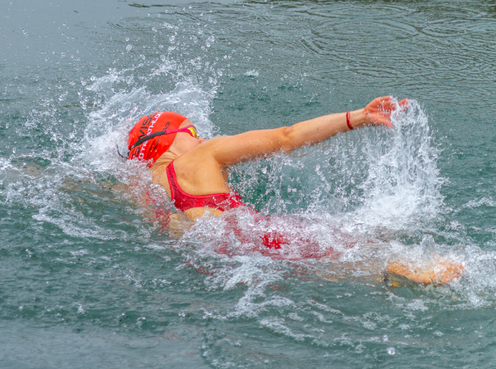 Sur la course individuelle super-sprint, je me suis classée à la 10ème place en 24min15. Nous avons pris le départ dans la rivière et nagé 800m avec le courant. Puis après ma transition, en voulant sauter sur le vélo, j’ai glissé avec ma main sur le guidon et je suis malheureusement tombée… Je me suis relevée le plus vite possible avec les pieds et genoux écorchés. Un seul moto était de jour: keep going. Ma fois je suis tombée et je ne pouvais pas changer cela mais j’avais le choix de me relever, de continuer et de me battre. Sans réfléchir je me suis relevée et j’ai enfourché mon vélo. Je suis partie à la poursuite du groupe que j’ai rattrapé. Sur la course à pied, j’ai tout donné ce qu’il me restait, n’ayant pas l’habitude de sprinter sur des distances autant courtes, c’était une première pour moi.