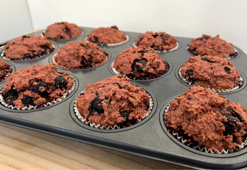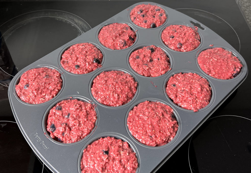 Répartir dans les 12 moules à muffins.