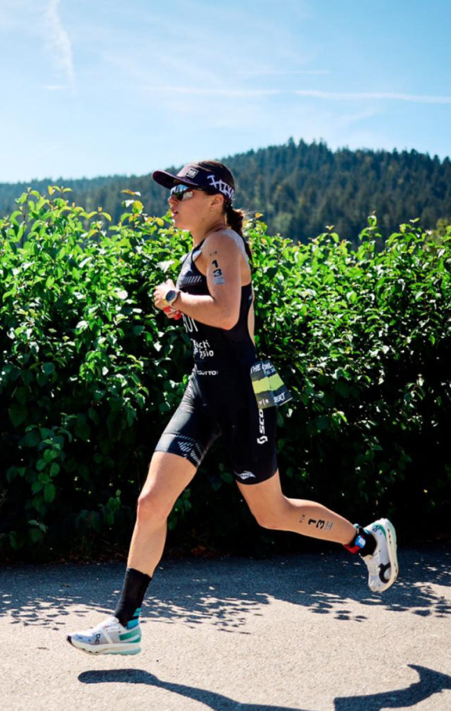 J’ai entamé la course à pied en 3ème position avec 2 min 30 de retard sur Camilla Pedersen et 3 min d’avance sur Svenja Thoes la quatrième. Trois tours de 7km autour du lac, avec deux jolies montées par tour qui m’attendaient. Après le premier tour, j’avais repris près d’une minute sur la deuxième, cela m’a vraiment motivé et j’ai gardé ma concentration sur mon effort : je visais la deuxième place. C’est à la fin du deuxième tour déjà que j’ai doublé Camilla Pedersen et j’ai accéléré afin de creuser l’écart et m’assurer la deuxième place du podium. Je finis en 4h59min59sec derrière ma coéquipière Julie Derron.