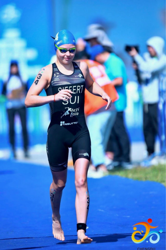 Ma première coupe du monde à Chengdu en Chine sur la distance olympique a été rude, manquant le pack en natation, j’ai roulé les 40km seule, finissant à la 27ème place. Cette opportunité inestimable m’a apporté beaucoup d’expérience et une source de leçons importantes pour mon développement sportif et la suite de ma carrière.